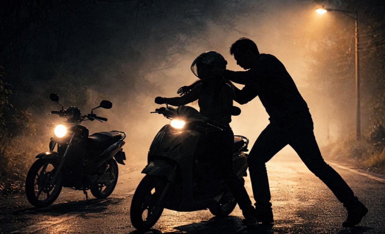 Korban yang terkejut kemudian berusaha melawan dengan menendang sepeda motor pelaku hingga pelaku terjatuh ke arah bawah jalan, sedangkan korban juga sempat terjatuh, namun segera bangkit dan bergerak menuju tanjakan.