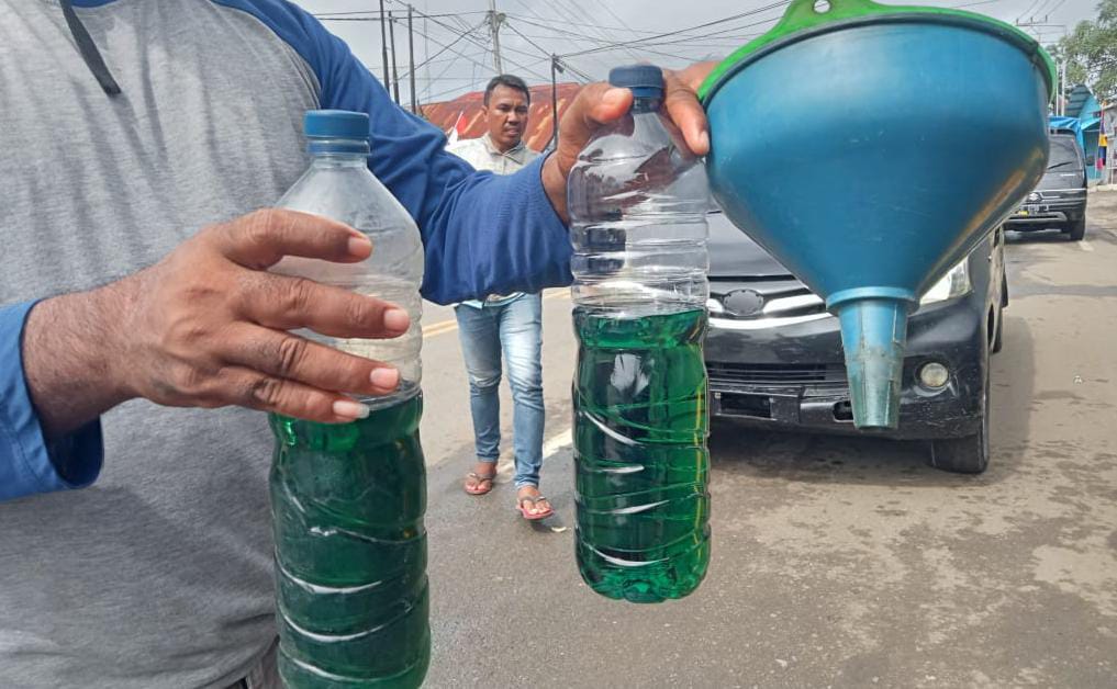 Saat ini, Pertalite dijual hingga Rp15.000 per liter. Meski demikian, stok BBM tersebut tetap sulit didapatkan di beberapa depot, salah satunya di Kecamatan Telaga Biru.