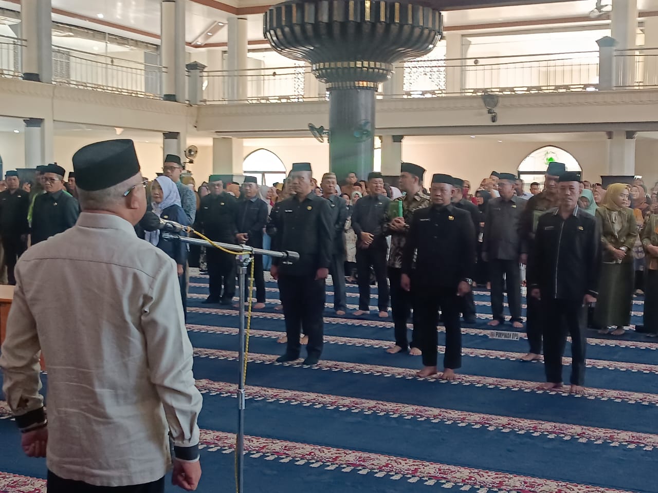 Prosesi dimulai dengan doa bersama kemudian dilanjutkan pembacaan sumpah jabatan yang menggema ke seluruh ruang masjid. Para pejabat tampak khidmat mengikuti setiap rangkaian acara.