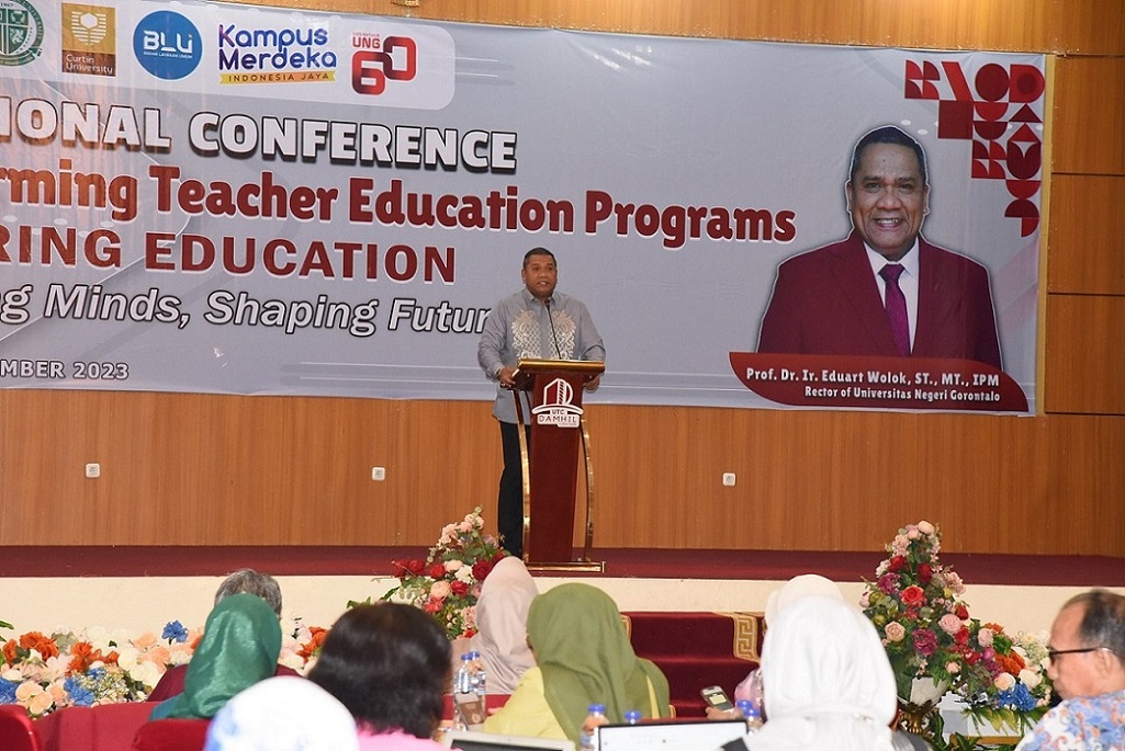 PROSESNEWS.ID — Dalam menyemarakkan perayaan dies natalis ke-60, Universitas Negeri Gorontalo menggelar kegiatan konferensi internasional, Selasa (13/9/23), di Ballroom TC Damhil. Kegiatan konferensi internasional transformasi pendidikan profesi Guru mengangkat tema tentang pemberdayaan pendidikan dengan mengubah pola pikir dan membentuk masa depan.