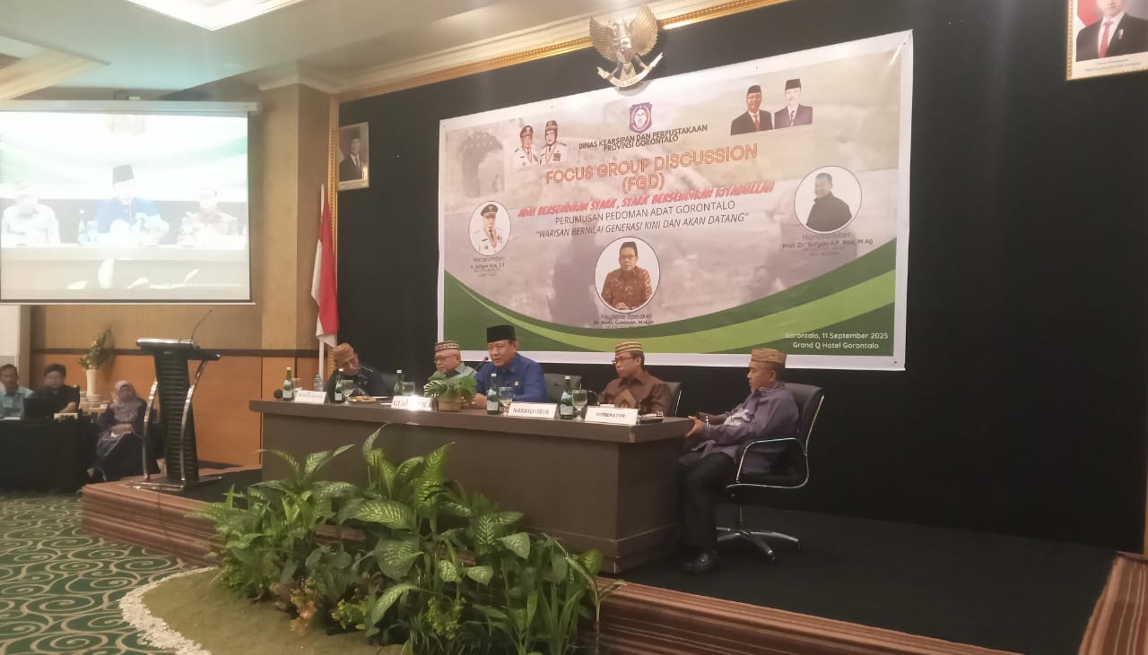 PROSESNEWS.ID – Dinas Kearsipan dan Perpustakaan Provinsi Gorontalo menggelar Focus Group Discussion (FGD) bertajuk “Adat bersendikan syara, syara bersendikan Kitabullah.”