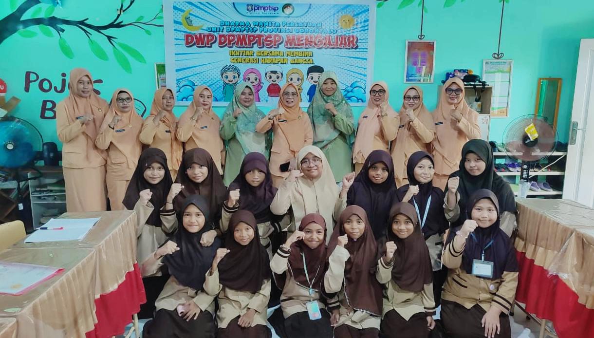 Ketua DWP Unit DPM-PTSP Provinsi Gorontalo, Ibu Dahliana Sultan Kalupe, turut hadir dan menyapa langsung para siswa. Dalam kesempatan itu, beliau menjelaskan secara sederhana mengenai apa itu DPM-PTSP dan peran lembaga tersebut dalam memberikan pelayanan perizinan serta investasi bagi masyarakat.