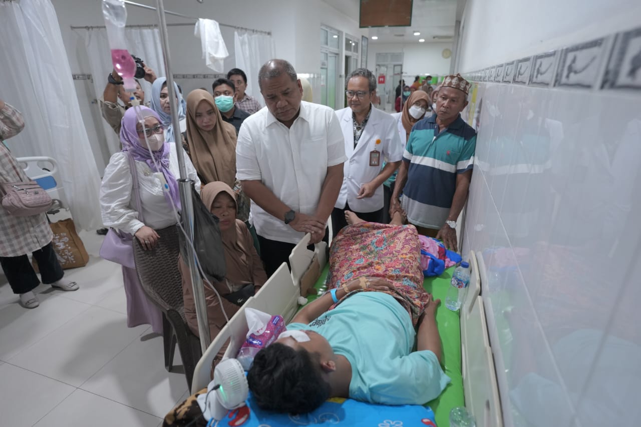 Begitu tiba di Bandara Provinsi Gorontalo, Rektor Eduart Wolok langsung menuju RSUD Aloei Saboe untuk menjenguk mahasiswa yang selamat dan tengah dirawat.
