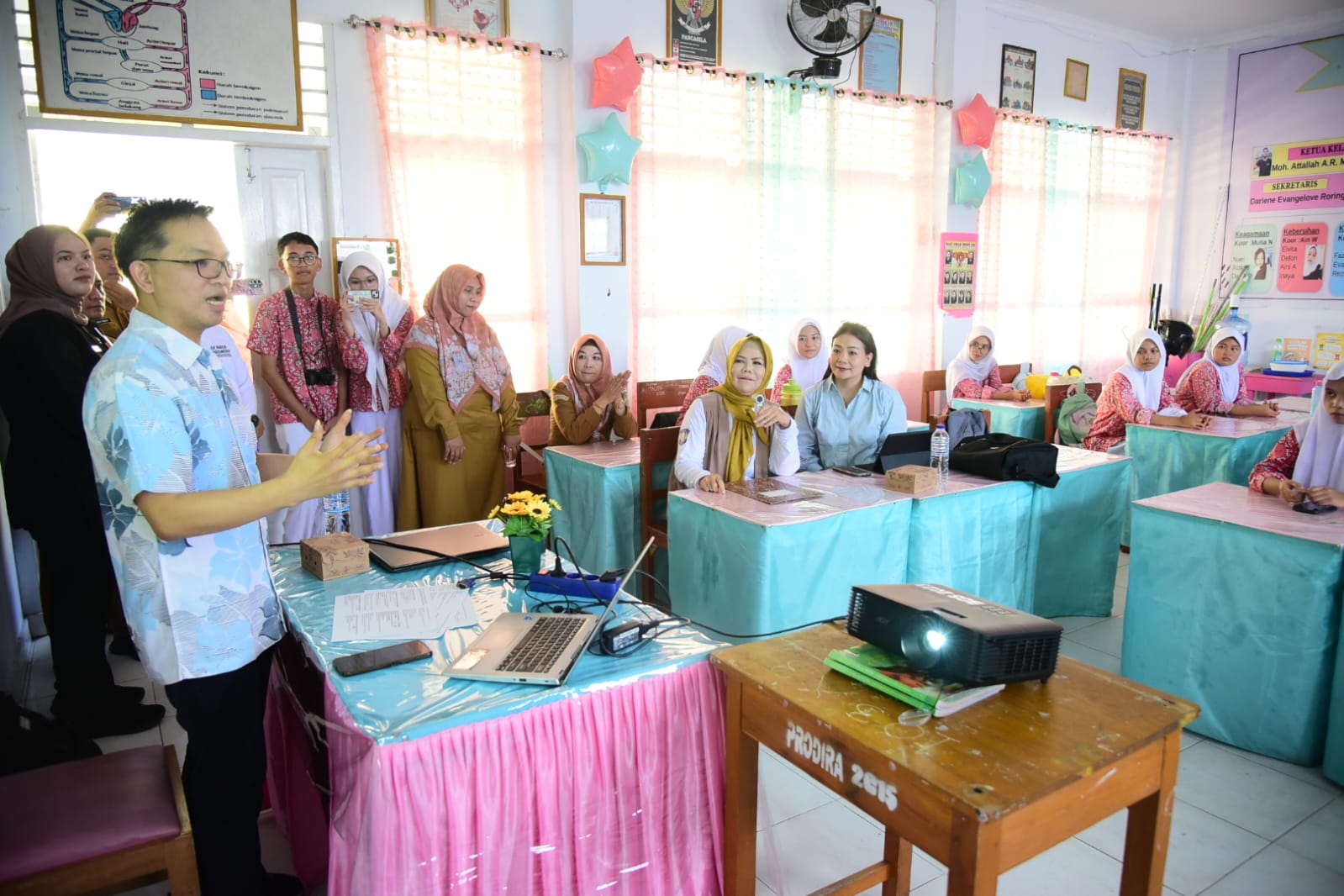 Wakil Gubernur bersama Kepala Dinas Kesehatan dan jajaran turut meninjau langsung proses edukasi di kelas, di mana orang tua murid terlibat aktif memberikan materi dan berdiskusi bersama siswa.
