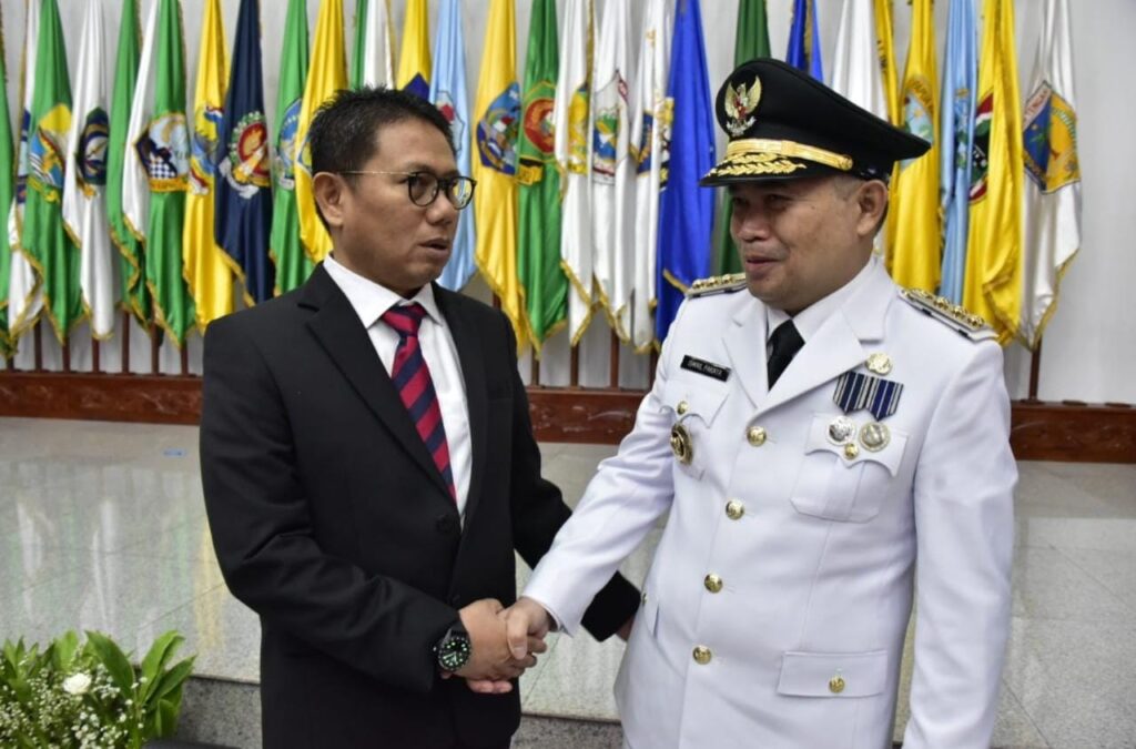 Mantan Penjabat Gubernur Hamka Hendra Noer (kiri), bersama Penjabat Gubernur Gorontalo Ismail Pakaya (kanan)