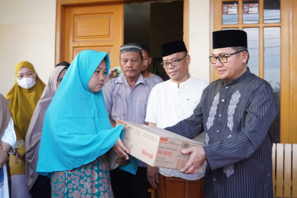 Wali Kota Gorontalo, Marten Taha menyerahkan bantuan ke korban kebakaran di Tamalate. (foto. rijal/Prosesnews)