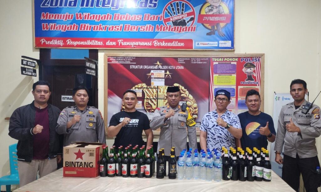 Dalam kegiatan ini jajaran Polsek Kota Utara berhasil mengamankan 75 botol minuman beralkohol berbagai jenis yakni 32 botol captikus ukuran 600ML, 19 botol kasegaran, 5 botol bir Guinnes dan 19 botol bir bintang.