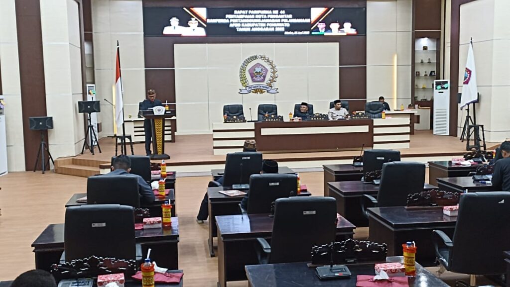 DPRD Pohuwato menggelar rapat paripurna ke 44, penyampaian nota pengantar ranperda pertanggungjawaban pelaksanaan APBD Kabupaten Pohuwato Tahun Anggaran 2022, Jumat (23/6/2023). Rapat dipimipin ketua DPRD Nasir Giasi.