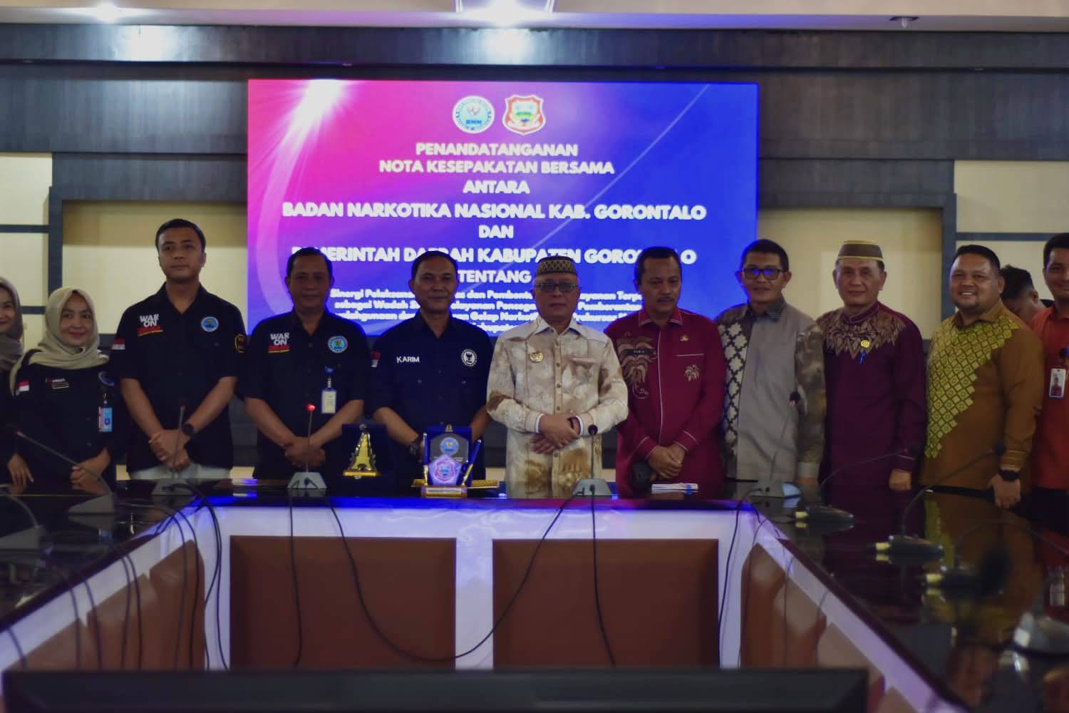 PROSESNEWS.ID — Pemerintah Kabupaten Gorontalo bersama Badan Narkotika Nasional (BNN) Kabupaten Gorontalo resmi menandatangani nota kesepakatan tentang sinergi pelaksanaan fasilitas dan pembentukan Unit Layanan Terpadu (ULT) dalam upaya pencegahan dan pemberantasan penyalahgunaan serta peredaran gelap narkotika.