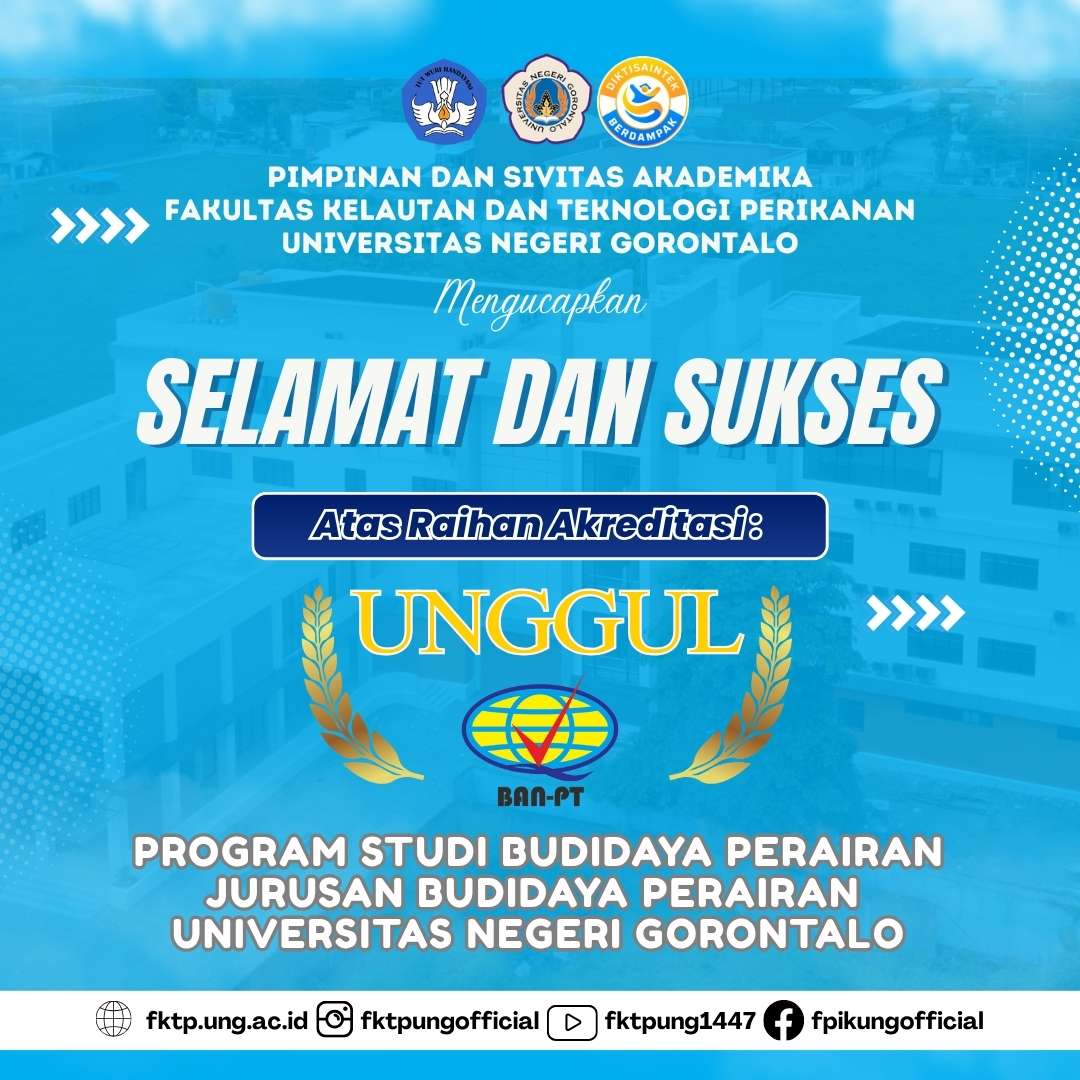 Dekan FKTP, Prof. Dr. Ir. Yuniarti Koniyo, MP., menuturkan bahwa capaian akreditasi unggul ini menjadi bukti nyata atas kualitas pendidikan di UNG, khususnya pada bidang budidaya perairan, yang telah diakui secara nasional. Keberhasilan ini juga menjadi dorongan besar bagi FKTP untuk terus meningkatkan mutu di berbagai aspek.