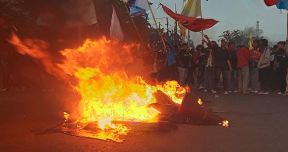 Protes Tak Kunjung Didengar, Massa Aksi di Gorontalo Bakar Pembatas Jalan