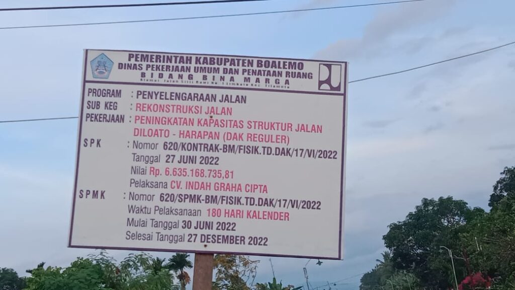 Pemuda asal Wonosari, Kabupaten Boalemo Fian Hamzah mengatakan, pekerjaan jalan Diloato – Harapan, hingga masuk awal tahun 2023 tak kunjung selesai. Dirinya menduga, pengerjaan jalan yang menelan anggaran 6 Miliar tersebut menyebabkan kerugian negara, akibat tidak selesai pekerjaan.
