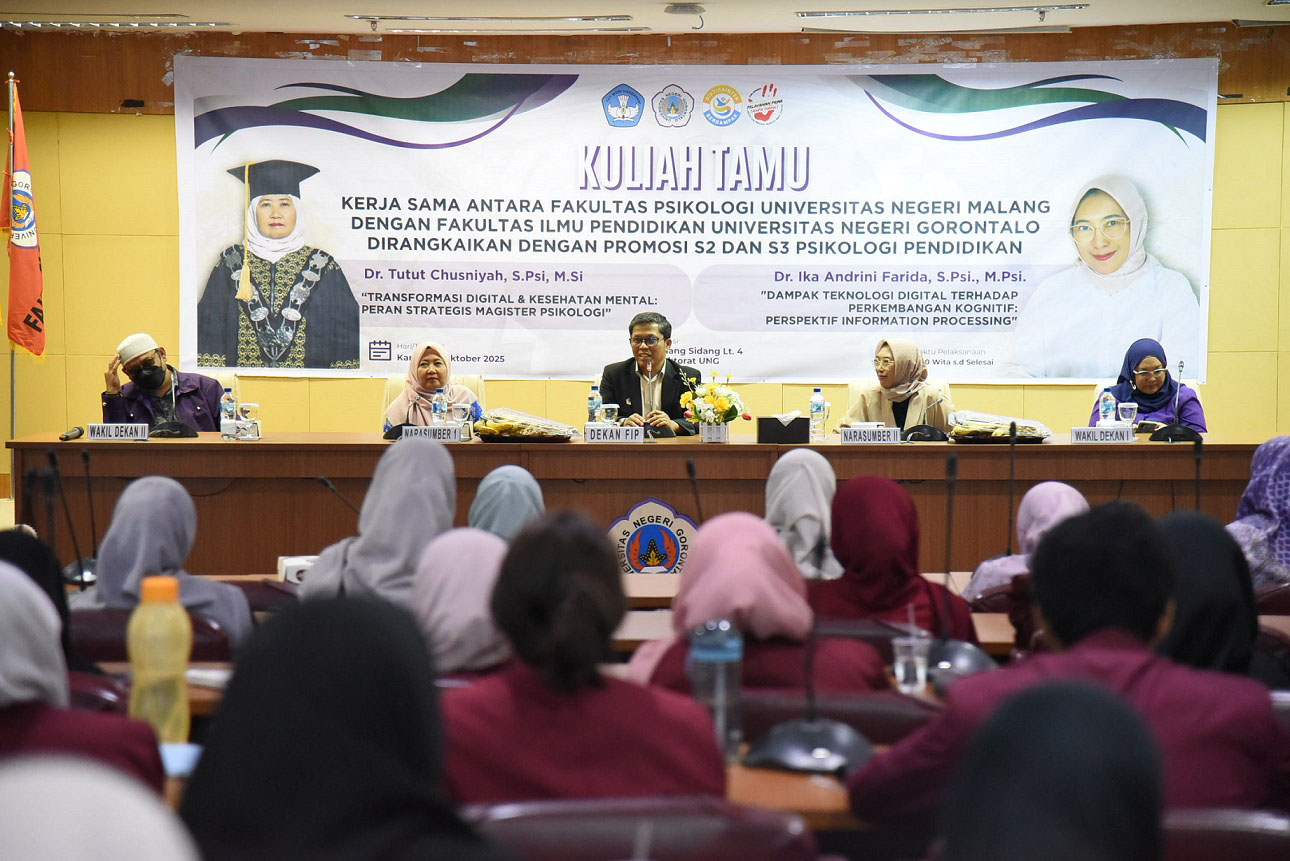 Kolaborasi tersebut diwujudkan melalui kegiatan kuliah tamu yang digelar pada Kamis (23/10), dengan menghadirkan dua narasumber ahli dari UM untuk berbagi ilmu dan pengalaman akademik kepada mahasiswa Psikologi UNG.