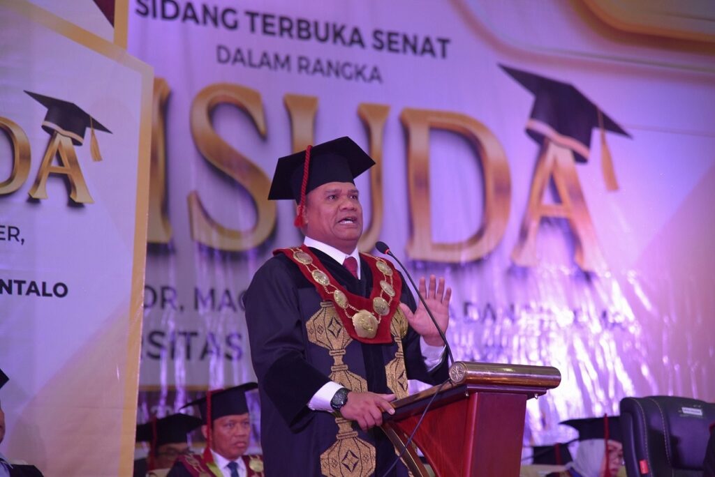 PROSESNEWS.ID – Melalui sidang senat terbuka, Universitas Negeri Gorontalo dengan penuh rasa bangga mengukuhkan sebanyak 1402 lulusan terbaik dari berbagai bidang ilmu pengetahuan. Rektor UNG Prof. Dr. Ir. Eduart Wolok, S.T., M.T., turut memberikan penghargaan, bagi lulusan yang telah menyelesaikan perjalanan akademik dengan sukses.
