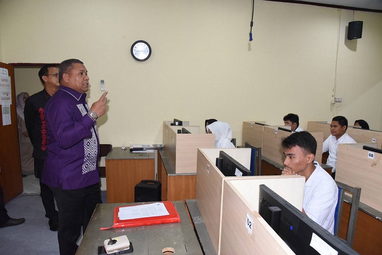 PROSESNEWS.ID – Untuk memastikan pelaksanaan ujian Computer Based Test (CBT) jalur Mandiri 2025 berjalan dengan optimal, Rektor Universitas Negeri Gorontalo (UNG), Prof. Dr. Ir. Eduart Wolok, S.T., M.T., melakukan pemantauan langsung di sejumlah titik lokasi ujian di lingkungan kampus pada Kamis (3/7).