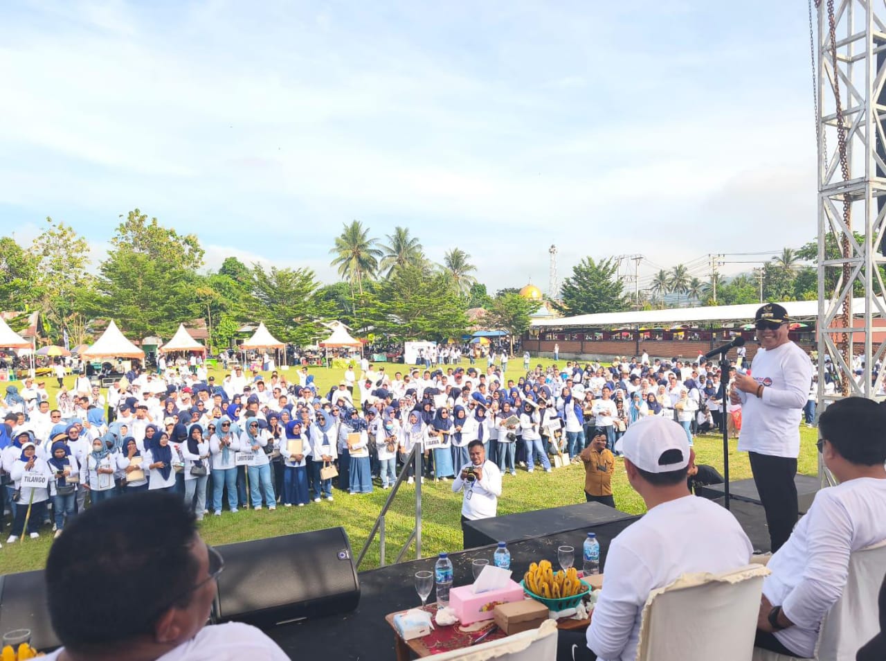 PROSESNEWS.ID – Ribuan perangkat desa se-Kabupaten Gorontalo menghadiri Apel Akbar yang digelar di Lapangan Basulapa, Desa Isimu Selatan, Kecamatan Tibawa, Sabtu (27/9/2025).
