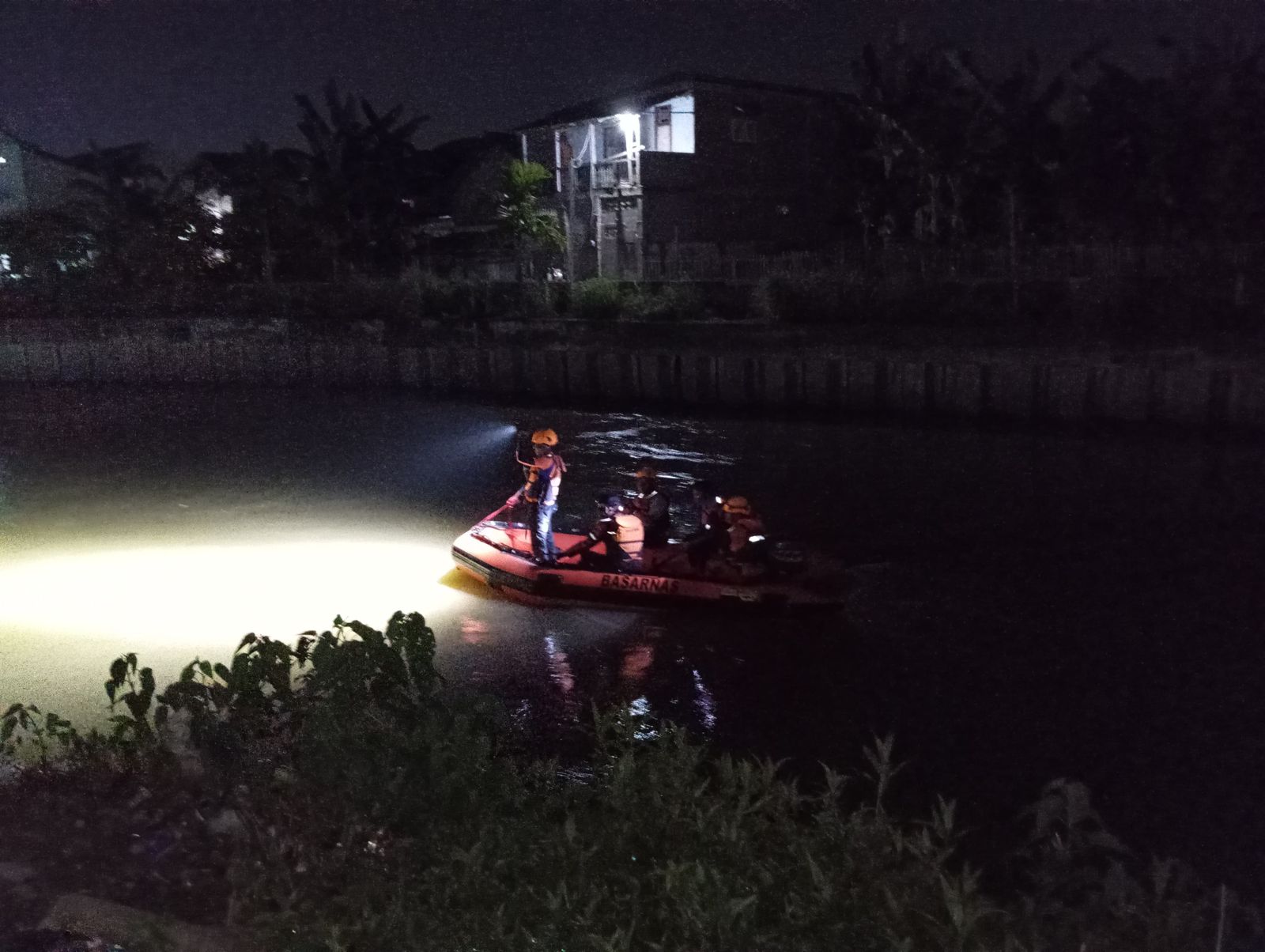 Upaya pencarian malam itu sempat mengalami kendala akibat kondisi air sungai yang keruh dan visibilitas terbatas.