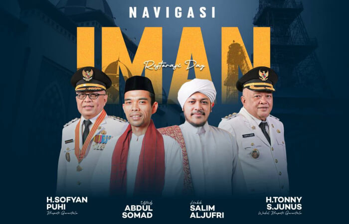 “Mari kita hadir dalam kegiatan Navigasi Iman bersama Ustadz Abdul Somad dan Habib Salim Aljufri yang akan dilaksanakan pada hari Jumat pukul 06.00 di Masjid Agung Baiturrahman Limboto,” ujar Sofyan.