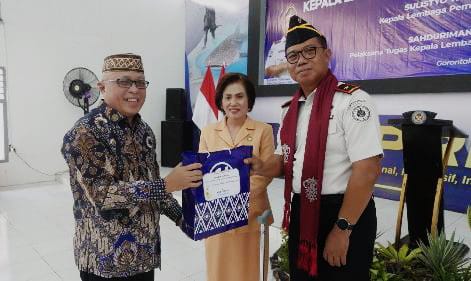 Sebagai bentuk penghormatan, Bupati Gorontalo turut menyerahkan cendera mata kepada Sulistyo Wibowo sebagai simbol terima kasih atas kerja sama lintas instansi yang telah terjalin.