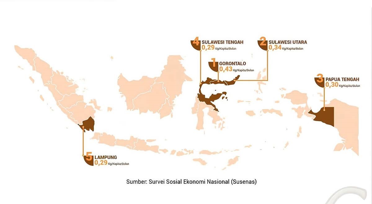 PROSESNEWS.ID – Provinsi Gorontalo tercatat sebagai daerah dengan tingkat konsumsi cabai rawit tertinggi di Indonesia berdasarkan data Survei Sosial Ekonomi Nasional (Susenas) Maret 2024. Konsumsi cabai rawit per kapita per bulan di Gorontalo mencapai 0,43.