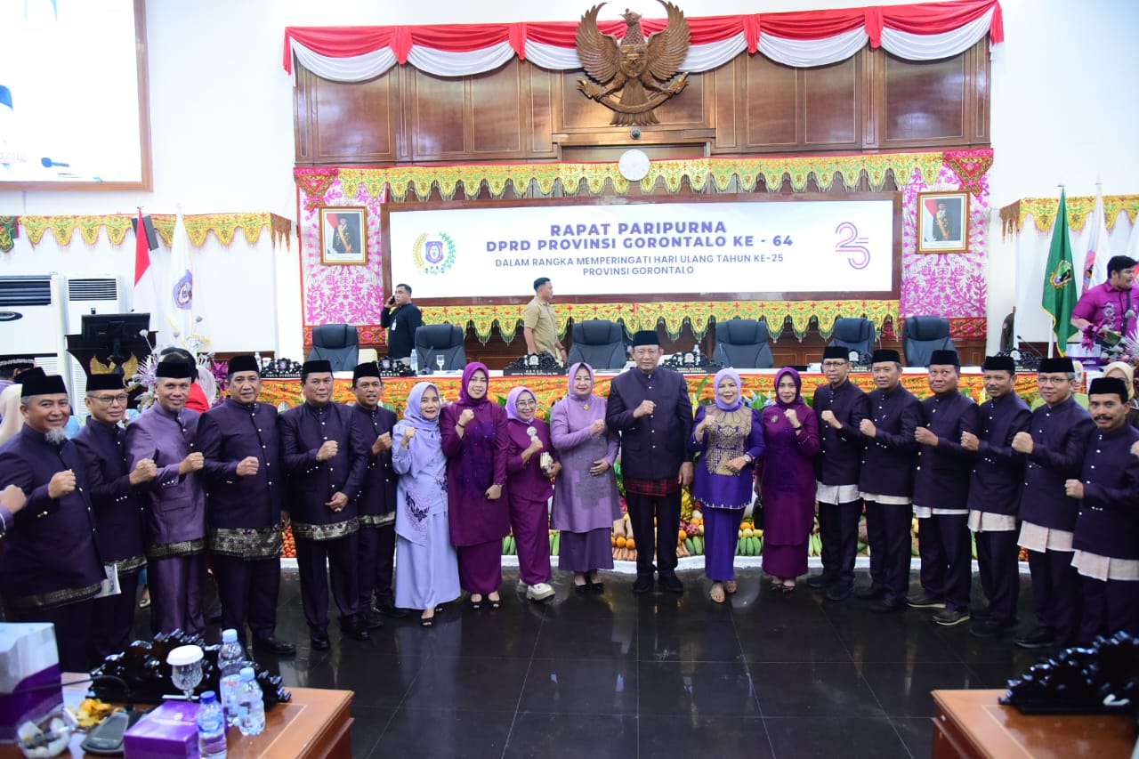 PROSESNEWS.ID – Wakil Gubernur Gorontalo, Idah Syahidah Rusli Habibie, menghadiri Rapat Paripurna ke-64 dalam rangka memperingati Hari Ulang Tahun ke-25 Provinsi Gorontalo yang berlangsung di ruang rapat Kantor DPRD, Jumat (5/12/2025).