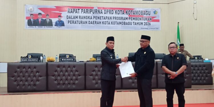 PROSESNEWS.ID Kotamobagu – Wali Kota Kotamobagu, dr weny Gaib, menghadiri rapat Paripurna Dewan Perwakilan Rakyat Daerah (DPRD) kota Kotamobagu, dalam rangka Penetapan Program Pembentukan Peraturan Daerah tahun 2026. Rapat paripurna berlangsung di Ruang sidang Kantor DPRD Kotamobagu, pada 09/02/2026.